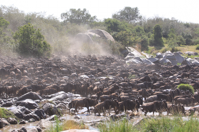 Another update, sourced by Lemala Camps, a company who owns a unique collection of Lodges, Permanent Tented Camps & Mobile Camps in Tanzania says: “Hi Carel, there was a small crossing, in that the beasts started to cross, but then the vulture activity on the far bank scared the remainder and the crossing stopped. The wildebeest then gathered for a few hours and around 16:30 they crossed. It was large and was about 45 min. We worked magic and your clients, Alex and partner, were there to see it so lovely timing. I don’t have pics of the big crossing because Tabby had to leave before they crossed. I can also inform you that right now there is another gathering of them at Makutano. Regards, Veronica.”
